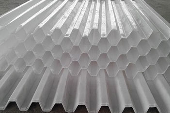 斜板填料、乙丙共聚斜板填料和小間距斜板填料主要由乙丙共聚材料制成。在淺層理論的基礎上,在斜板上部設置沉淀距離合理的沉淀段,在下部控制斜板的幾何形狀,在斜板下部形成穩定的接觸凝集段,通過接觸作用和淺池沉淀機理達到明礬和水分離的目的。